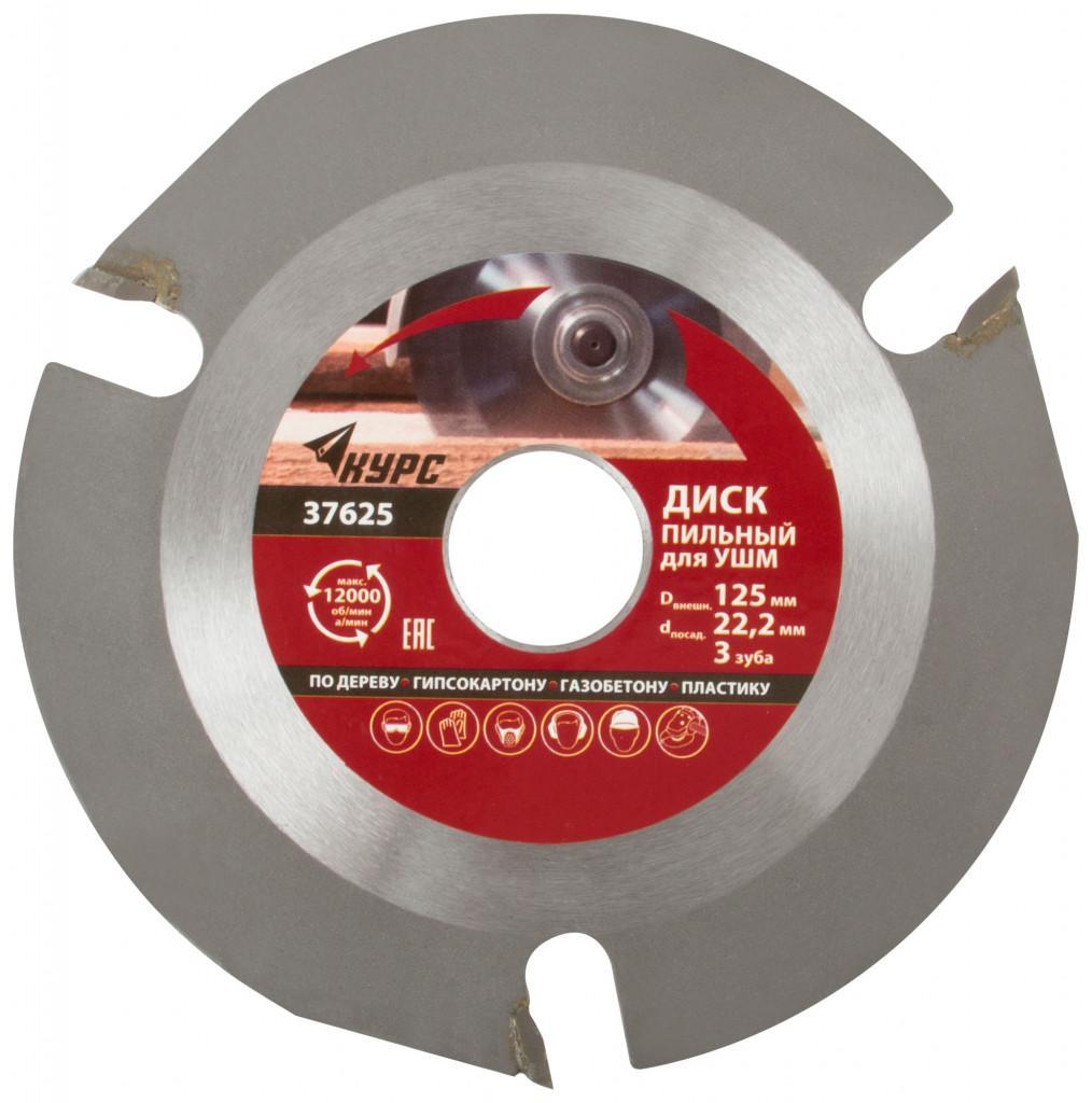 Диск пильный по дереву, 125 мм х 22,2 мм, 3 зуба с карбидными вставками KУРС 37625