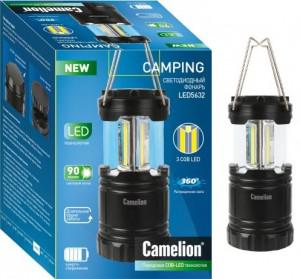 Фонарь кемпинговый LED5632 (3xR03) 3св/д COB (90lm) крюк, черный/пластик Camelion 676888