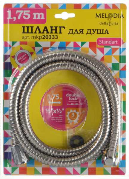 Шланг д/душа 1/2"*1/2" конус нерж.d14мм, L175см, 2-й зажим MELODIA STANDARD MKP20333BL 34516
